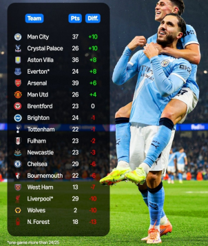 Efter 17. runde af Premier League er pointforskellen mellem hvert hold i denne sæson og ved juletid sidste sæson betydelig. Fans i billige fodboldtrøjer har bemærket, at Manchester City og Crystal Palace har gjort de største forbedringer, hver med 10 point flere end på samme tidspunkt sidste sæson. Aston Villa og Everton har 8 point flere, mens Arsenal og Manchester United har henholdsvis 6 og 4 point flere. Liverpool og Wolves har 10 point færre, og Chelsea har 6 færre.