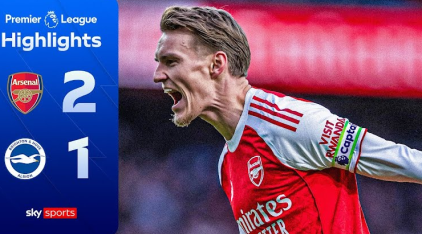 Martin Ødegaard abriu o marcador para o Arsenal aos 14 minutos. O autogolo de Georginio Rutter aos 52 minutos ampliou a vantagem do Arsenal para 2-0. O golo de Diego Gómez aos 64 minutos deixou o Arsenal nervoso. Pouco antes do apito final, Yankuba Minteh desferiu um remate perigoso, talvez pensando que já tinha empatado. Mas David Raya, com a camisolas de futebol Arsenal do Brighton, acabou com as esperanças do Brighton de empatar com uma defesa espetacular, desviando a bola por cima da barra. O treinador Mikel Arteta elogiou Raya especificamente após a partida, dizendo: "Esta defesa foi incrível! Ele teve uma grande visão da lateral do campo. É exatamente isso que eles precisam que os seus jogadores façam, que atuem assim em momentos cruciais."
