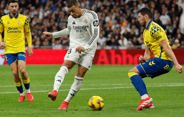 Continúa la jornada 20 de La Liga, con el Real Madrid enfrentándose a Las Palmas en casa. En este partido, Mbappé, vistiendo la camisetas Real Madrid, estuvo en excelente forma y casi completó su primer hat-trick con el Real Madrid. ¡Con esta victoria el Real Madrid vuelve a lo más alto de la clasificación con 46 puntos!