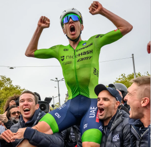I 1987 vant irske Stephen Roche Tour de France, Giro d'Italia og verdensmesterskapet i sykkel. Samme år ble han den andre personen som gjorde det, etter den legendariske Eddy Merckx. Tadej Pogacar følger i fotsporene til sine forgjengere, og er den tredje føreren som vinner Triple Crown. Folk i komfortable Team BikeExchange-Jayco Sykkelklær kaller Tadej Pogacar «sykkelens gigant». Etter å ha passert målstreken klarte ikke Tadej Pogacar lenger å holde igjen gleden, men han innrømmet samtidig at han opprinnelig ikke hadde planlagt å sette i gang så tidlig.
