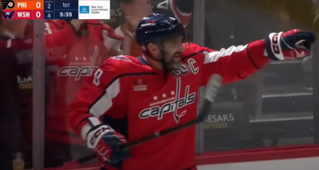 Kun ensimmäistä erää oli jäljellä hieman yli viisi minuuttia, Alex Ovetshkin ampui suoraan vasemman tolpan eteen, joka vei kiekon Sam Erssonin ohi ja Flyersin verkkoon. Tämän illan maali oli hänelle kauden 35., ja hän tarvitsee enää vain 7 maalia tullakseen jääkiekon historian parhaaksi maalintekijäksi! Washington Capitals Pelipaita pukeutunut Alex Ovetshkin sanoi pelin jälkeen rakastavansa lähtölaskentaa ja mahdollisuutta osallistua ja kokea kaikki. Hän pitää hetkistä, jolloin yleisö nousee seisomaan ja taputtaa, ja on erittäin iloinen asia saada ihmisten tuki!