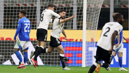 Die italienische Mannschaft, die zu Hause spielte, machte weiterhin Druck. In der 9. Minute startete die italienische Mannschaft einen wunderbaren Angriff über die rechte Seite. Politano bekam den Ball, ließ die Abwehr hinter sich und schlug dann eine präzise Flanke. Tonali schob den Ball im Strafraum ins Tor, Italien 1:0. In der 49. Minute startete die deutsche Mannschaft einen schnellen Konter über die rechte Seite. Kimmich spielte einen präzisen Pass und Kleindinst köpfte im Strafraum zum 1:1. Deutschland glich zum 1:1 aus. In der 76. Minute führte Kimmich im Deutschland fußball trikot einen Eckstoß von der rechten Seite aus und Leon Goretzka traf per Kopf und sicherte Deutschland damit den 2:1-Sieg! In der zweiten Runde trifft Deutschland zu Hause auf Italien.